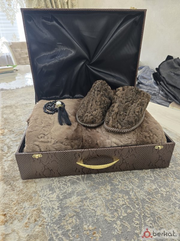 Подарочный Бокс из натурального меха каракуля Ковер и тапочки .Доставка отправка в любой город .