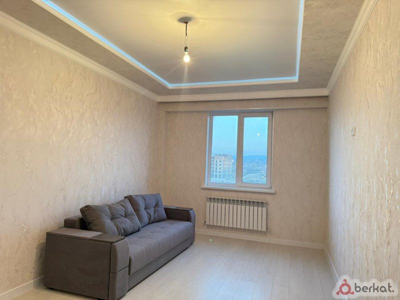 Срочно продается красивая 1+1 комнатная квартира общей площадью 52,8кв.в городе Магас, на 5 этаже 11-этажного дома. В квартире шикарный светлый современный ремонт, есть кухонный гарнитур, газовая плита, вытяжка, холодильник, кондиционер, стол, стулья. В ванной комнате есть красивая ванная мебель в белом цвете, стиральная машина, настенная сушилка-обогреватель. В спальне полная спальная мебель. В коридоре гарнитур для верхней одежды и обуви. Теплый пол, натяжные потолки Чистый, аккуратный подъезд, большой грузовой лифт. Двор большой, детская площадка, прогулочная зона. Вся необходимая инфраструктура в шаговой доступности: школа, спортивный фок, хоккейная, магазины.По вопросам писать на ватсап