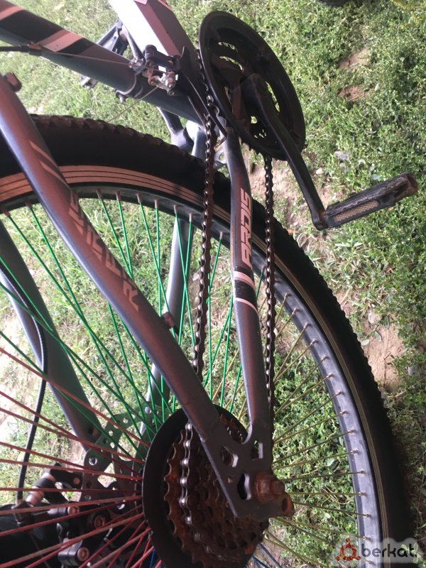 Ассалам алейкум Вежарий Продаю большой велосипед Купил, покатался 2 месяца и стоит в подвале состояние хорошее есть и минусы задняя тормоза нету а передний надо подтянуть. А остальное всё работает...