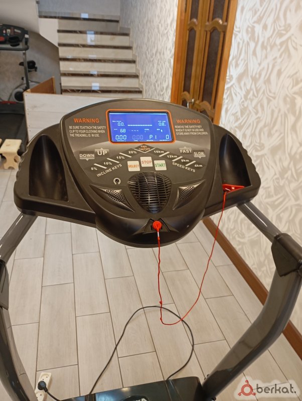 Беговая электрическая дорожка . 43__ программ тренировок, регулировка угла наклона, измерение пульса и скорости, встроенный компьютер с возможностью просмотра пройденного расстояния, датчик измерения пульса на ручке Цена 25.000