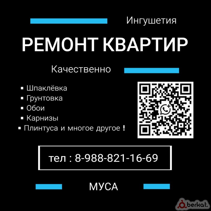 Асаламу алейкум занимаюсь ремонтом, квартир и частных домов, кладу ламинат и паркетную доску.Делаю все на совесть, и несу ответственность за свою работу,скидка приветствуется смотря по объёму работы звоните пишите ✍️
