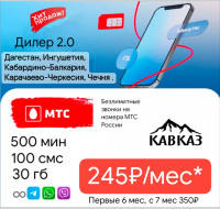 Продаю Сим-карты Мтс Ингушетии тариф 19р сутки безлимитный интернет 700мин 700смс с оформлением на паспорт