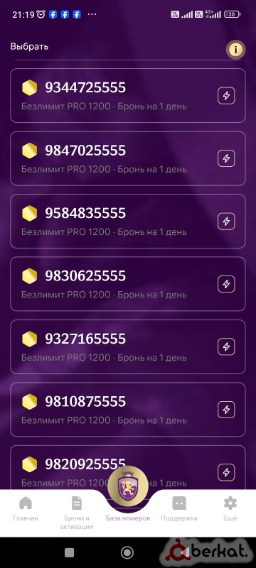 Ассаламу алейкум есть много других номеров Тариф от 390 до 550руб,безлимит✅ 500 мин 100смс